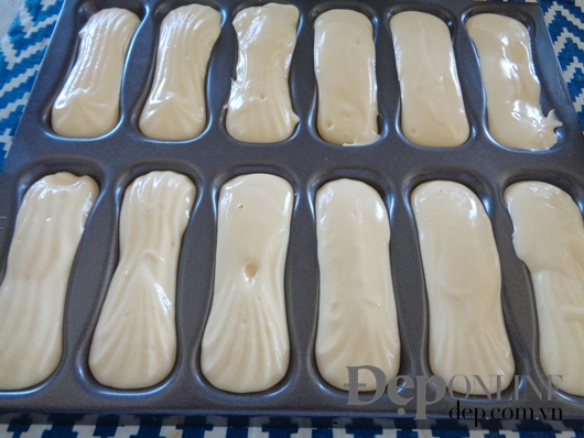 bao một lỗ tròn. Nặn bột theo chiều dài khoảng ngón tay lên khay có lót
